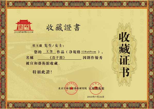 宣和艺术馆 收藏证书